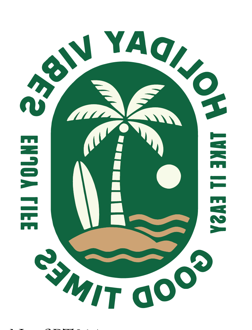 Vacation-ready circular patch with palm tree island design. Perfect for summer lovers.